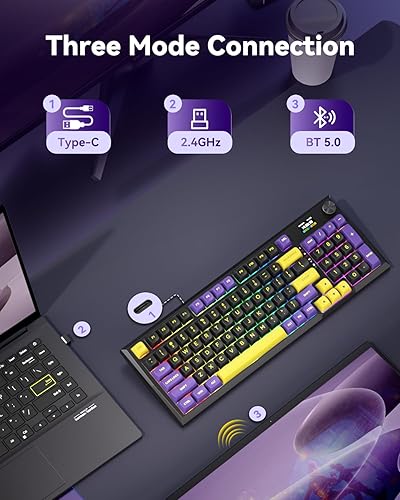 【Intuitive Control at Your Fingertips】The innovative LCD displays time, battery, and connection status. The premium knob lets you adjust volume, RGB lighting, and screen settings effortlessly—making customization a breeze.
