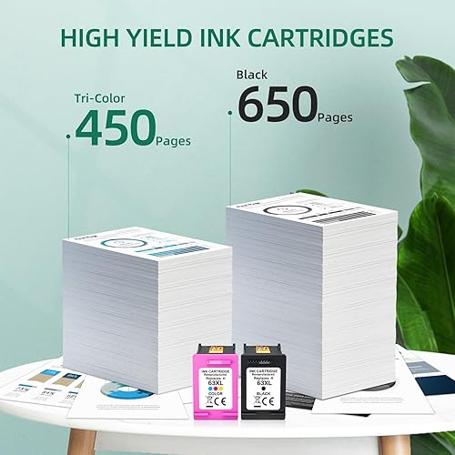 • Pages Yield: Up to 600 Pages per 63XL Black ink cartridge, 450 Pages per 63XL tri-color ink cartridge(5% coverage at A4 paper).