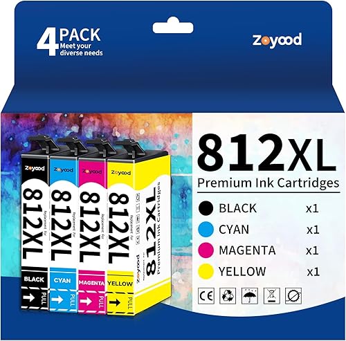 Exceptional Print Quality: Zoyood replacement for 812 XL ink cartridge epson delivers professional-grade printing results—sharp black text and precise, vibrant color images