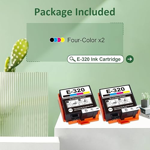 Product Details: 2-Pack Standard-yield Black& Color Ink Cartridges with premium ink based– includes 2 packs of 4-color t320 ink cartridge.