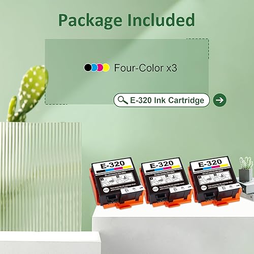 Product Details: 3-Pack Standard-yield Black& Color Ink Cartridges with premium ink based– includes 3 packs of 4-color remanufactured t320 ink cartridge.