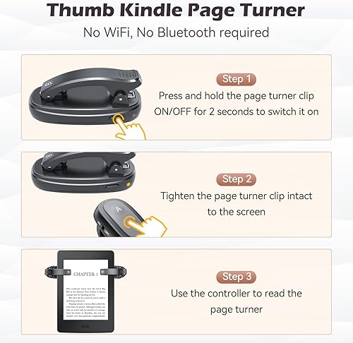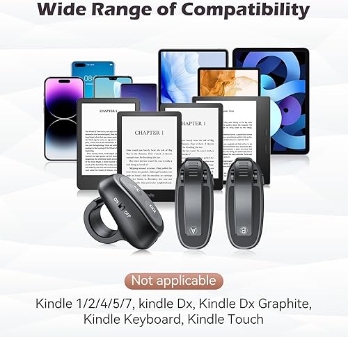 Page Turner for Kindle&Kobo: Just plug and play. Effortlessly turn pages on your Kindle with the wearable controller, with separate clips (A and B) for the left and right sides of the e-reader.
