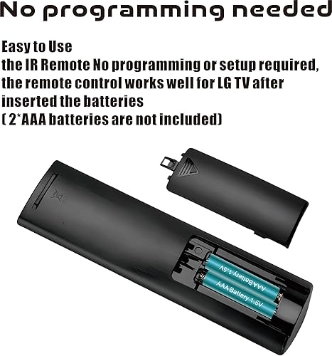 No Setup Needed: As a user-friendly for lg smart tv remote, it requires no programming. Just insert 2 AAA batteries (not always included) and start using—ideal as a for lg tv remote replacement or backup for lg remote control.