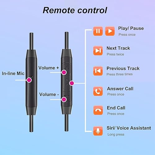 【Smart In-line Controls】 Built-in high-sensitivity microphone for hands-free calls; Multi-functional remote buttons for volume adjustment, music playback, and track switching.