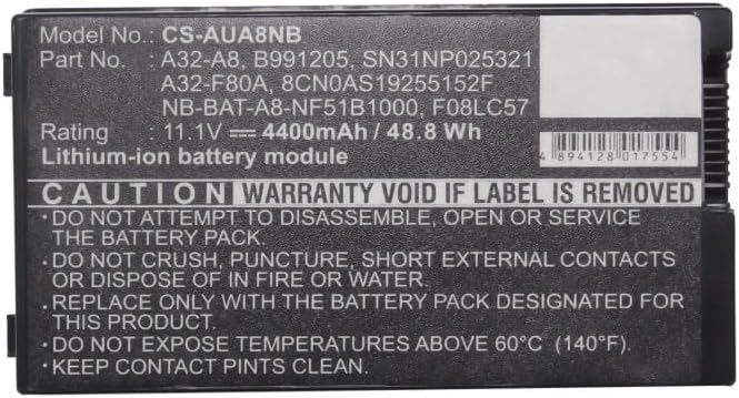 Replacement Battery for Asu's 70-NF51B1000,8CN0AS19255152F,90-NF51B1000,90-NF51B1000Y,90-NNN1B1000Y,A32-A8,A32-F80,A32-F80A,A32-F80H,B991205,F08LC57,L3TP,NB-BAT-A8-NF51B1000,SN31NP025321