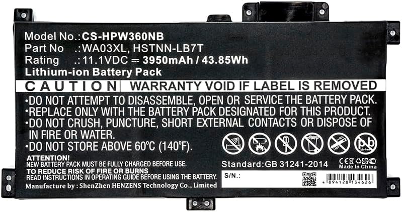 Comment on "Replacement Battery for H'P HSTNN-LB7T,TPN-W126,WA03XL,WAO3XL,916367-421,916367-541,916812-055,916812-855,3950mAh/11.1V"