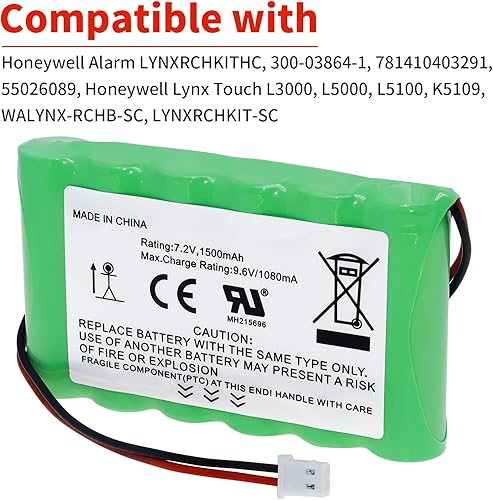 Perfect Fit for Honeywell Lynx Systems – Designed as a direct replacement for Honeywell alarm batteries, including part numbers 300-03864-1, 781410403291, 55026089, WALYNX-RCHB-SC, LYNXRCHKIT-SC, LYNXRCHKITHC , LYNX VoXice, LYNXR, LYNXR24, LYNXR24-SP LYNXR-2FR, LYNXR-2SIA, LYNXR-ENSIA LYNXR-EN, LYNXR-I, LYNXR-IE, LYNXR-EN, LYNXR-I, LYNXR-IE, LYNXSIA Plus, LYNXR-ISIA, LYNXRCHKITSHA LYNXRCHKIT-SHA, LYNXR CFLYNXR-EN, LYNXR-2, LYNXRIEN-A, LYNXRIEN-EA, LYNXR-IFR and compatible with Lynx Touch L3000, L5000, L5100, K5109 and other models (check full list in description NOTE: Battery Connector - 2 Prong)