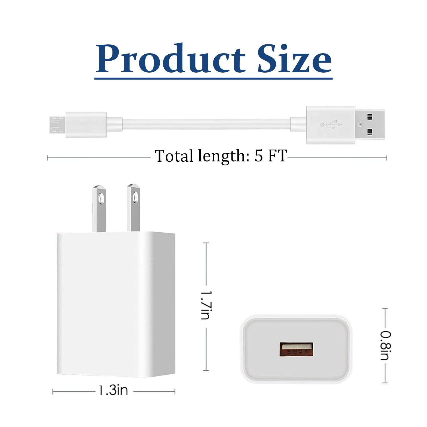 Included Components: 1 x 5FT Micro USB Charging Cable, 1 x Adapter