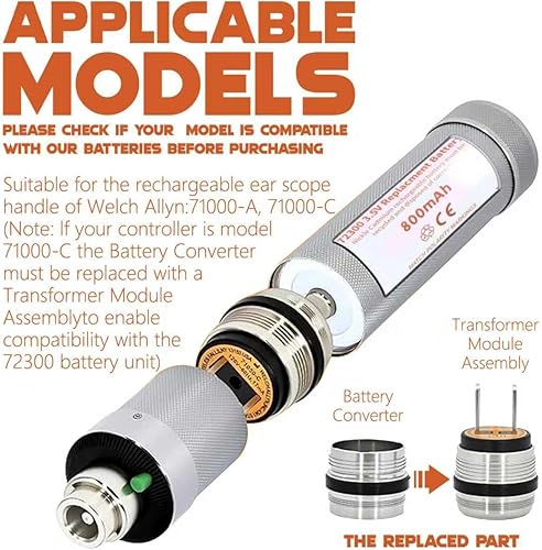 【Perfect Fit for Welch Allyn Devices】:Designed to seamlessly replace for Welch Allyn 72300 battery in desktop rechargeable otoscope handles (model 71000-A, 71000-C). Ensures compatibility without compromising performance, so you can focus on patient care without worrying about power disruptions.