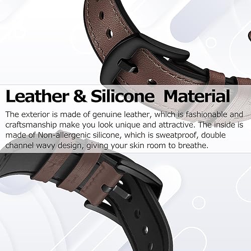 【Unique Double Material Design】The exterior is made of genuine leather, which is fashionable and craftsmanship make you look unique and attractive. The inside is made of non-allergenic silicone, which is sweatproof, double channel wavy design, giving your skin room to breathe.