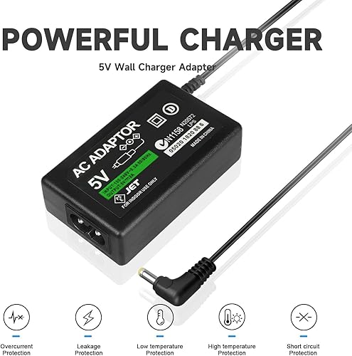 【POWER SPECIFICATION】: Input: AC 100-240V 50/60Hz; Output: DC 5V 2A. Professional charging cable is Fit for Sony PSP 1000 2000 3000 Series (PSP-1001, 2001, 3001) and E-1000.