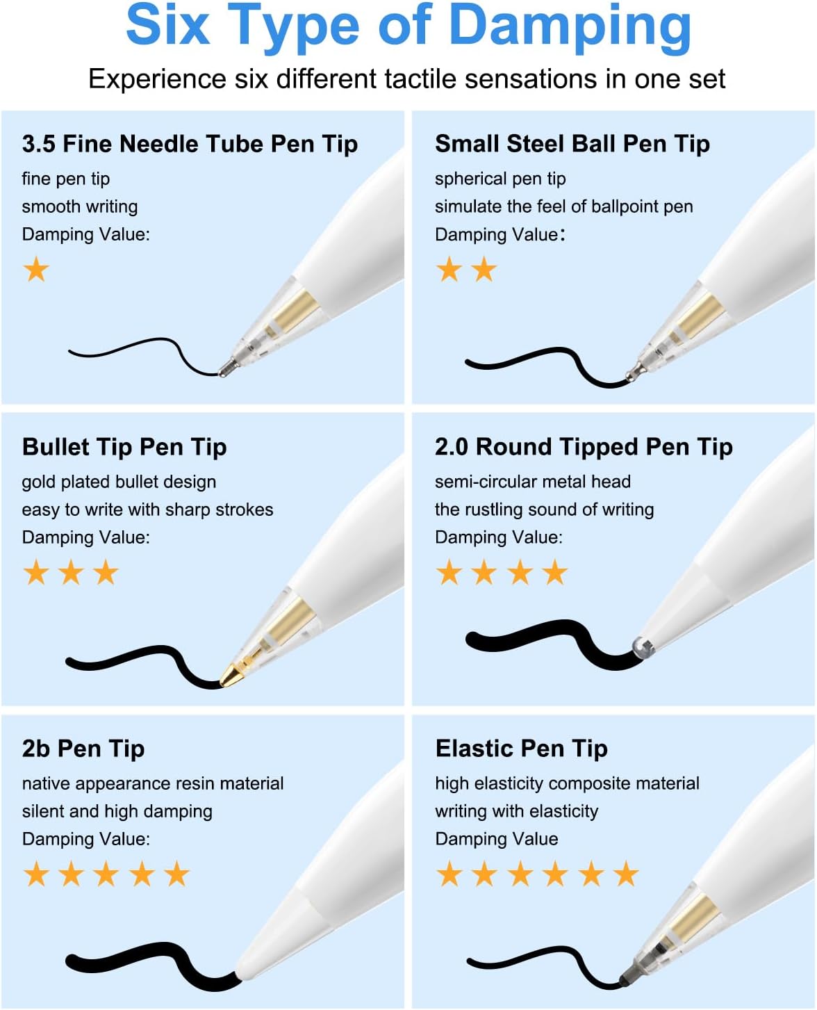 【Sensitive&Precise Apple Pen Tip】It has a built-in highly elastic compression spring with the same high-pressure sensitivity as the original, which makes writing and drawing smooth, stable and almost no lag. Tilting detection, sensitive to pressure, allowing you to draw lines and shadows of different thicknesses, just like the original pencil nib or like a real pen