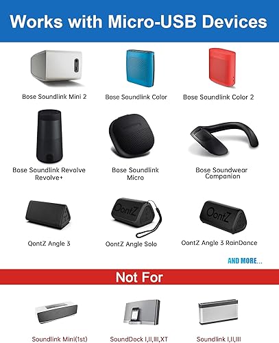 [Compatible Devices:] Works with Bose SoundLink Color (Model 415859), SoundLink Color I/II/III, SoundLink Color 2 (II), SoundLink Mini 2 (II), SoundLink Revolve, SoundLink Revolve+ (Plus), SoundLink Micro, SoundSport Wireless, SoundSport Free (including charging case), QuietComfort 35 (Series I & II), QuietComfort 20, QuietComfort 20i, AE2W, SoundWear Companion II.