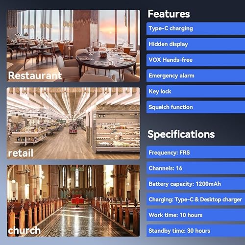 Durable and Intuitive;walkie talkie with screen; in contrast to LCD display; shatterproof hidden display uses LED lighting; convenient for checking the current channel and battery information