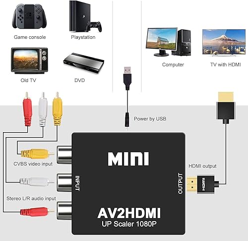 HDMI and AV Output Display: The game console comes with an AV to HDMI converter (HDMI converter supports 720p / 1080p,No HD cable),you can have more display options,whether your TV is RCA or HDMI input port, Mini Game consoles can be plug and play.according to the selection of the input port,use the TV remote control to select the RCA or HDMI signal channel,only then the TV can display the game.Picture quality will not be as crisp as todays games.