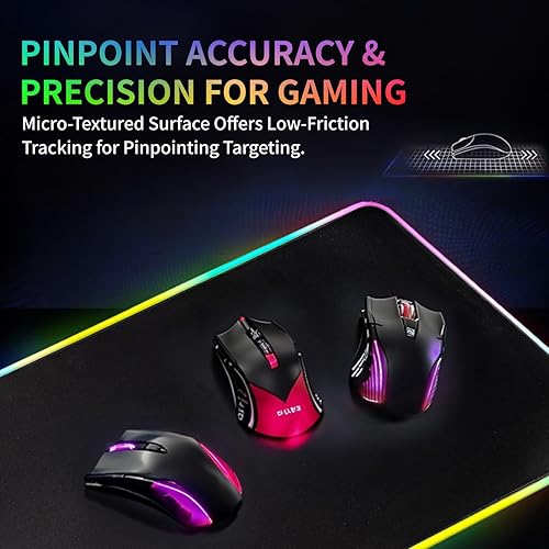 【Anti-slip Rubber Base】: The RGB gaming mouse pad is made of smooth microfiber material, which makes the mouse move more precise. It also comes with a back texture that enhances this ability even further.