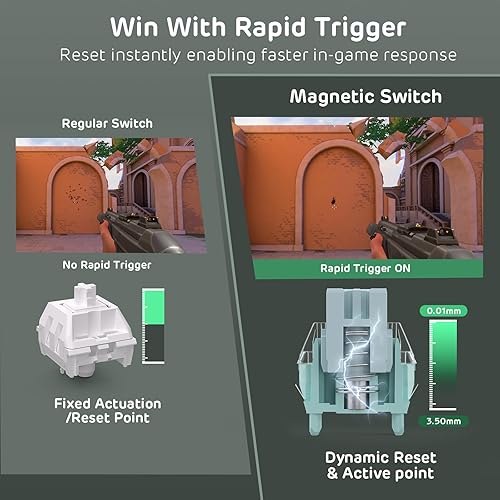 8K Hz Polling Rate & Ultra-Low Latency— Featuring an 8000Hz polling rate and 64K Hz key scanning frequency, RK magnetic keyboard delivers an incredible 0.125ms response time - 8x faster than standard gaming keyboards (1000Hz). Your actions register almost instantly for a true competitive edge. Also crafted with a convenient volume knob for instant access to audio adjustments.