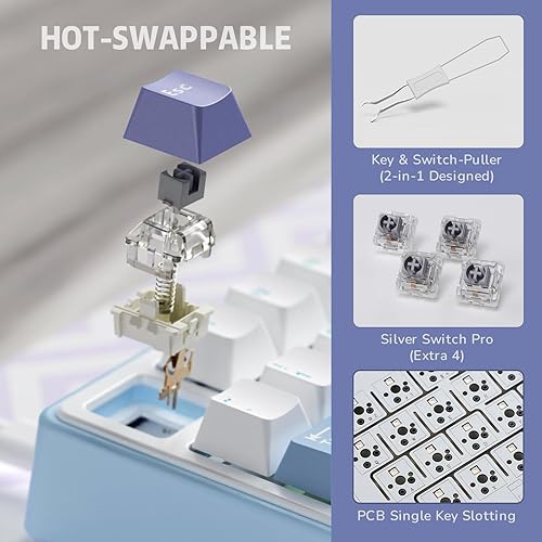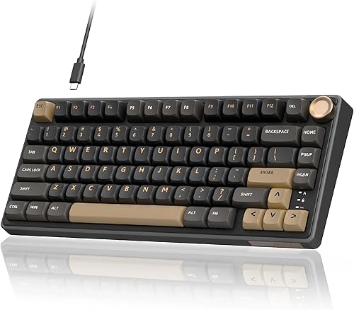 75% Percent Mechanical Keyboard Wired - Compact gaming keyboard retains essential function and arrow keys for achieving more keyboard features while freeing up desk space. And it comes with a durable aluminum CNC volume knob. You can rotate the knob to adjust the volume quickly. An excellent setup for your desk.