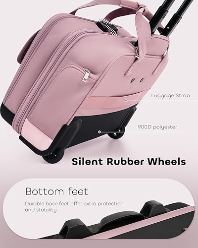 Rolling Laptop Bag for Men and Women, 17 Inch Roller Computer Briefcase, Underseat Carry On Luggage Suitcase with Wheels, Waterproof 2 Wheeled Case for Work, Travel, College, Mobile Office Bag, Navy(Pink)