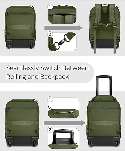 【Travel, Work, Life—One Bag Meets All Your Needs】This roller laptop backpack has a spacious main compartment, padded electronics organizer, 4 front pockets, and 2 side pockets for convenience. The main compartment includes a wet/dry waterproof pocket, perfect for storing toiletries during travel. The thickened electronics organizer ensures extra protection for your devices. Whether for business, a weekend getaway, or daily commute, the bag’s large capacity meets all your needs
