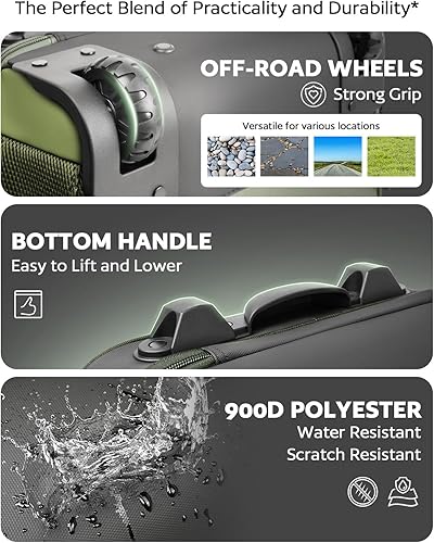 【Fearless Journey, with Off-Road Wheels, Nothing Can Stop You】This rolling tactical backpack has flexible off-road wheels, making it easier to handle various terrains with less effort. The bottom of the carry on backpack is made from water-resistant and wear-resistant 900D material, making it easy to clean while being highly durable and resistant to wear. The exterior is also crafted from water-resistant material, ensuring that rainwater won't easily seep into the bag, even on rainy days
