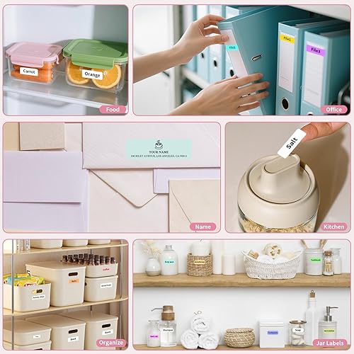 Wide Application: The label maker printing width up to 12mm with a variety of styles of label tapes, provide 50+ Templates (updating), 60+ Borders, 600+ Icons, 25+ Fonts. Widely used in home storage and organization, school and office file classification, small business, such as jar stickers, food date, cosmetics, personal items, barcodes, name tags, cable identification, price tags, jewelry labels, etc. It’s also the perfect for school supplies and home helper (Note: Continuous label tapes are not supported)