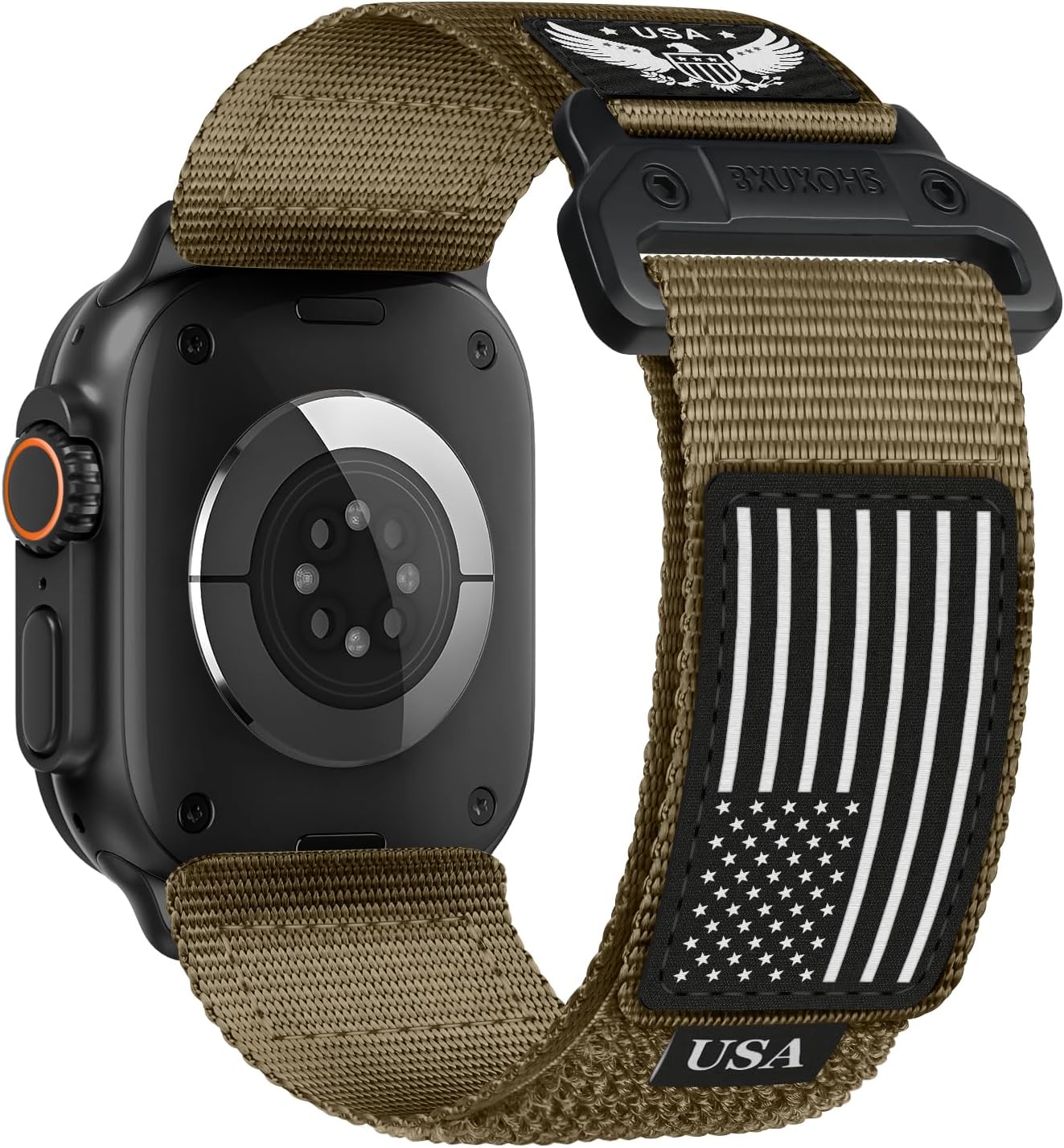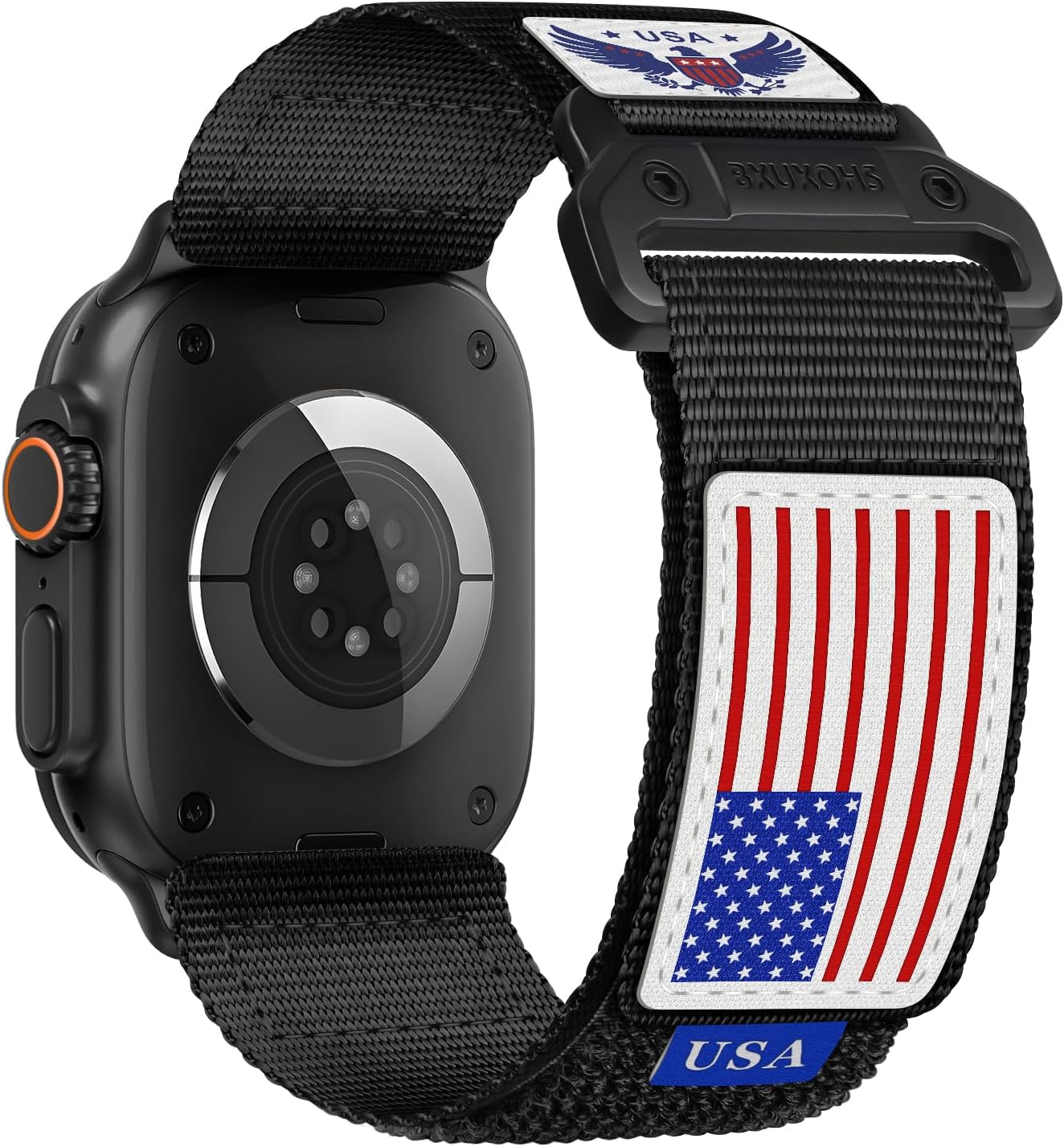 【BXUXOHS Patriotic Ultra Design】BXUXOHS Rugged nylon band for Apple Watch Ultra band is designed with high-quality nylon material + stars-stripes flag + freedom shield + stainless steel high-grade hardware, showing the bravery and strength of men,which is an excellent choice for patriots. Strong closure + metal connector + Rugged & soft nylon makes it suitable for leisure, work, and outdoor sports: mountaineering, off-roading, cycling, camping, etc.