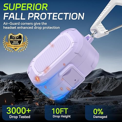 Safety Lock Case for Bose QuietComfort Earbuds Case(2024),Military-Grade Drop Protection Hard Case Cover for Bose New QuietComfort Bluetooth Earbuds with Cleaning Kit&Carabiner(Charger not Included)(Purple)