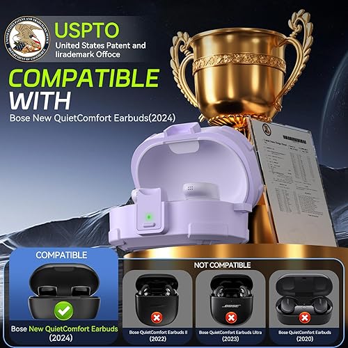 Comment on "Safety Lock Case for Bose QuietComfort Earbuds Case(2024),Military-Grade Drop Protection Hard Case Cover for Bose New QuietComfort Bluetooth Earbuds with Cleaning Kit&Carabiner(Charger not Included)(Purple)"
