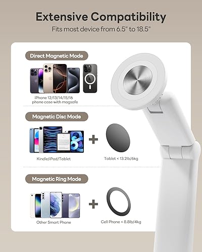 【Enhanced High-Strength Magnetic Mount】SAIJI iPad stand for reading in bed reliably holds all 4.7" to 15.6" phones, tablets & e-readers like Kindle Colorsoft, Kindle Color, Kindle Scribe, new iPad Mini 6, Kindle Fire HD 7/8/10, iPhone 16, iPhone 16 Pro Max, iPhone 15, Surface Pro, Galaxy Tab, Switch, etc. To enhance compatibility, we provide free magnetic sheets for devices that cannot magnetically attach.