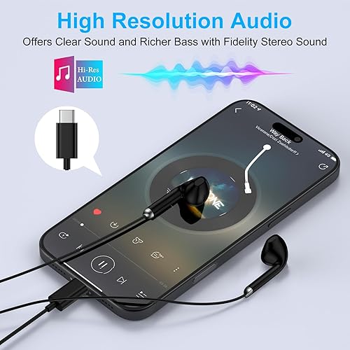 【Quality & Durable Earbuds】Aluminum alloy connectors of samsung a36 headphones wired greatly decrease the possibility of bad contact. 4 Foot long usb c earphones wired with anti-wrap oxygen-free copper wire core make the whole iphone 16e earbuds wired flexibility to pass through backpack or clothes during climbing. Make it long-lasting and stretch resistant. wired usb c galaxy a56 headphones gives you safe and pleasant wearing experience. Simply plug and play to enjoy your favorite songs. type c ear buds wired is compact and easy to carry. Great for commuting, catching the bus, running, and climbing.