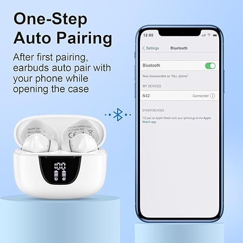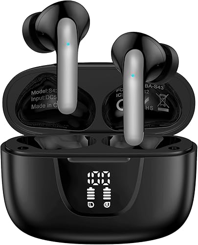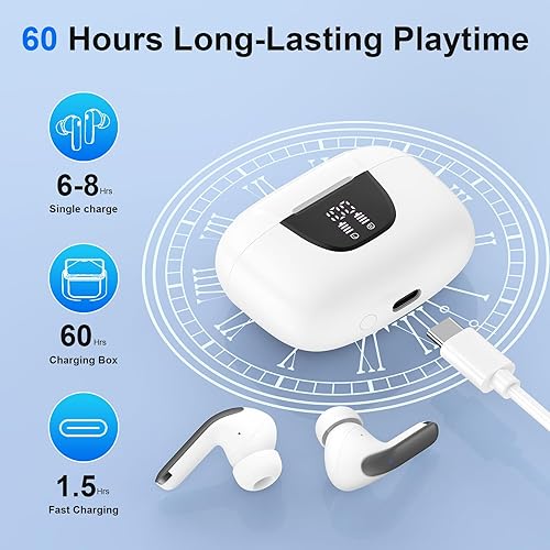 【LED Display & 60H Playtime】wireless earbuds offers up to 8 hours of listening time on a single charge samsung s25 ultra, bluetooth headphones allowing you to enjoy a total of 60 hours of music by taking turns with the charging case. bluetooth earbuds feature a LED digital display that provides real-time battery status. wireless headphones Easily monitor the remaining power and plan your iphone 16e usage accordingly. noise cancelling earbuds support wired charging with a usb c cable and wireless charging.