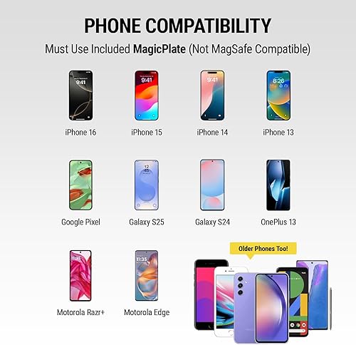Fast, Optimal Installation: Just peel, stick, and press for quick setup. For the strongest magnetic hold, place the MagicPlate directly on your phone or outside your case, and wait 24 hours before using with your magnetic phone mount for car or home. Note: All devices must use the included plates; not compatible with MagSafe