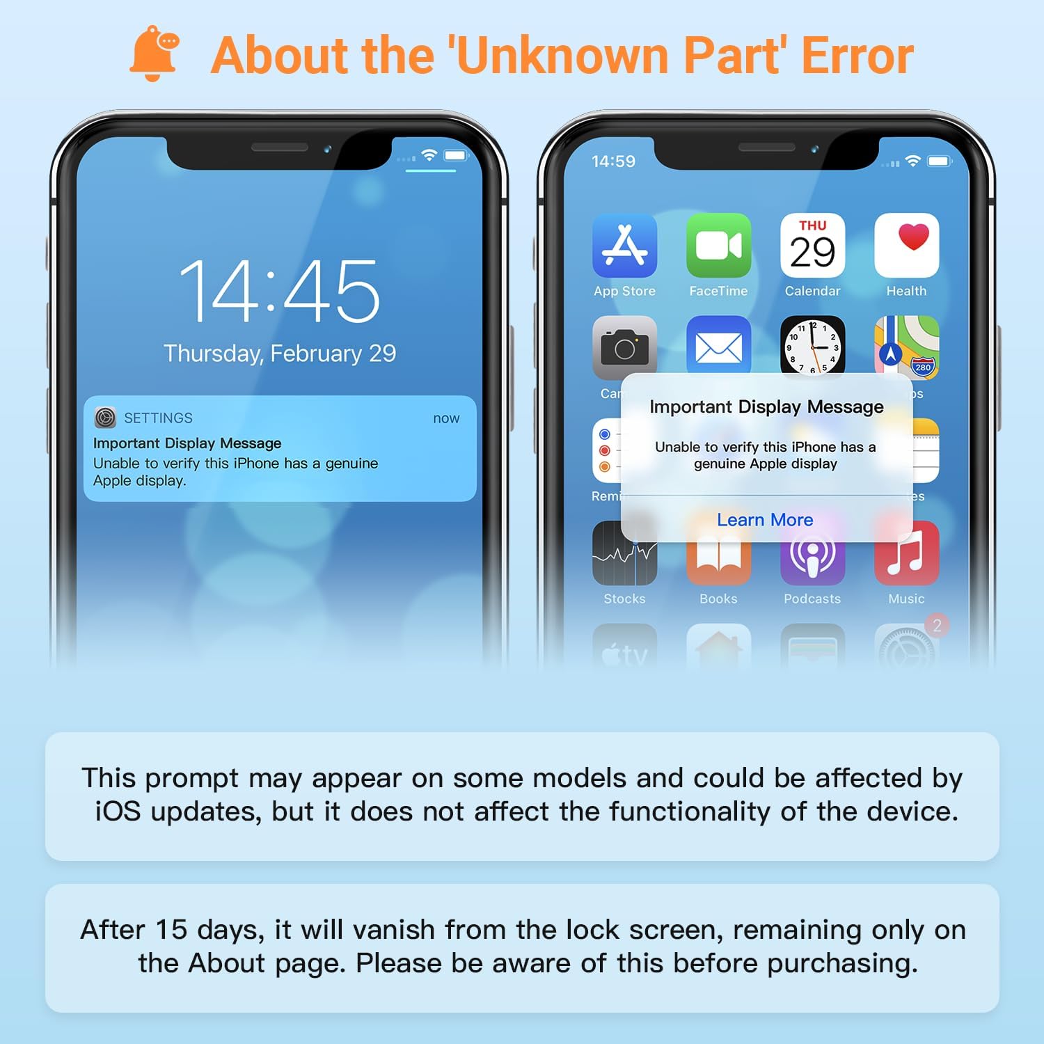 【Compatibility】This iPhone 13 Pro Max screen replacement is suitable only for iPhone 13 Pro Max, 6.1 inches. Models: A2482, A2631, A2634, A2635, A2635. Please confirm your model before purchasing, you can check it in "Settings" of your phone.