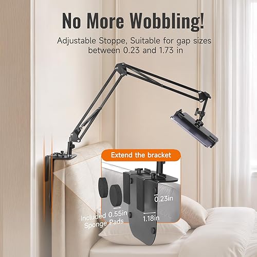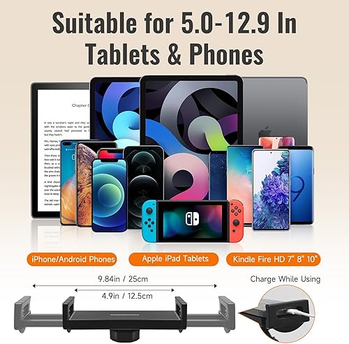 【Wide Compatibility】This cell phone holder for bed supports phones, tablets, and e-readers from 5 inches to 12.9 inches (with cases up to 5.9-9.8 in wide and 0.5 in thick), with a weight capacity of up to 2 pounds. Whether you use it for your phone, tablet, or e-reader, our stand will provide a secure hold for a smooth, hands-free experience.