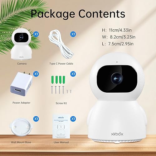 【Wifi Connection, No Subscription Fee】XKBOX home security camera pet does not rely on subscription fees to use, which supports 2.4ghz wifi connection quickly and steadily, giving you a smooth use experience. Pan-Tilt rotating lens provides you with 360° broad horizon.