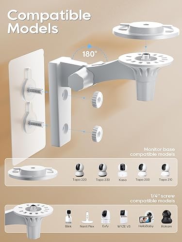 This monitor mount is specifically designed for security cameras and baby monitors,Applicable to any monitor or baby monitor camera with a 1/4 inch threaded hole,The adapter is suitable for Tapo 220/Tapo 230/Tapo 200/Tapo 210/Kasa