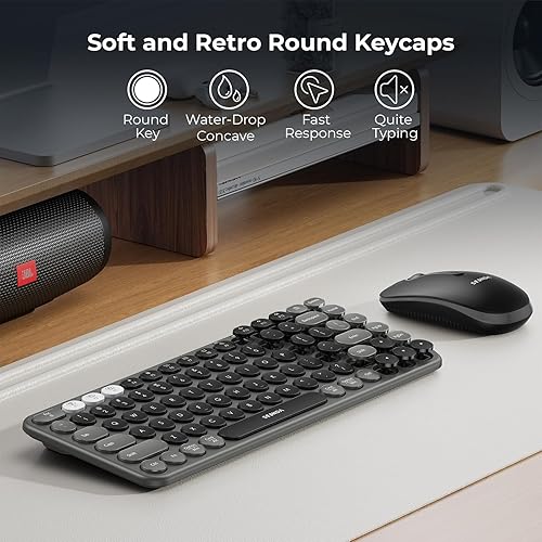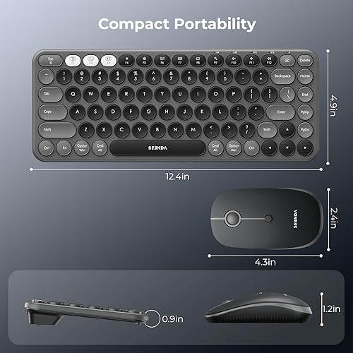 seenda Bluetooth Keyboard and Mouse Combo, Retro Round Keycaps, COE203 Compact Multi-Device Wireless Keyboard and Mouse for PC/Computer/Laptop/Mac/iPad, Black