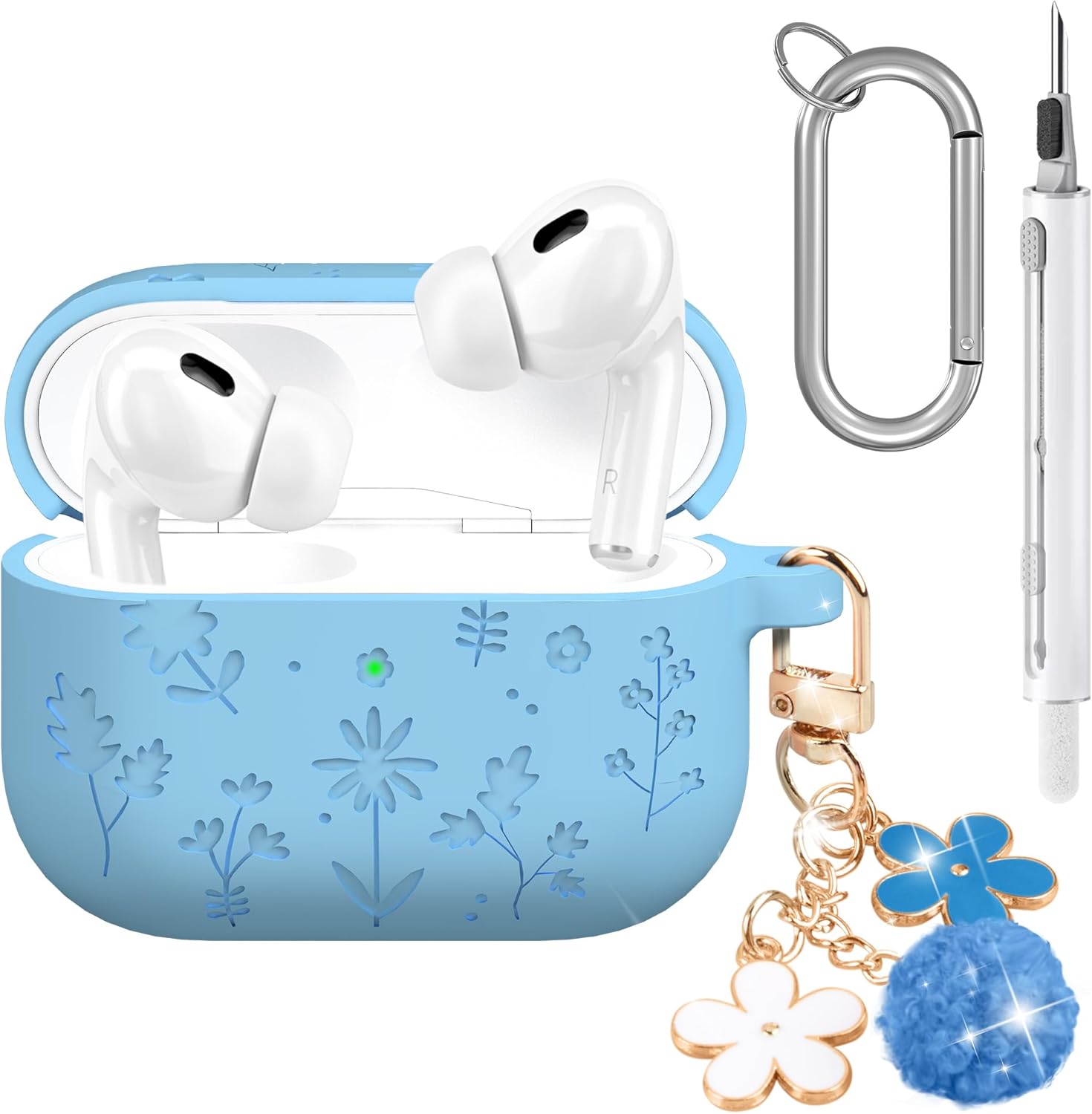 All-in-One Practical Set: Comes with a protective case, a convenient keychain, a extra carabiner, and a cleaning pen—everything you need to keep your earbuds safe, organized, and free from dust.