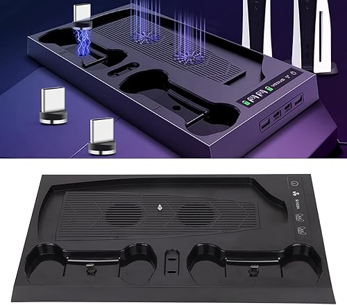 Septpenta Gaming Console Cooling Fan, Dual Fast Charge & Multi Power, 2 Magnetic Dongles, Premium Smart Chip, Dual 2800 RPM Cooling, Gp5 1510 Cooling Bracket for PS5