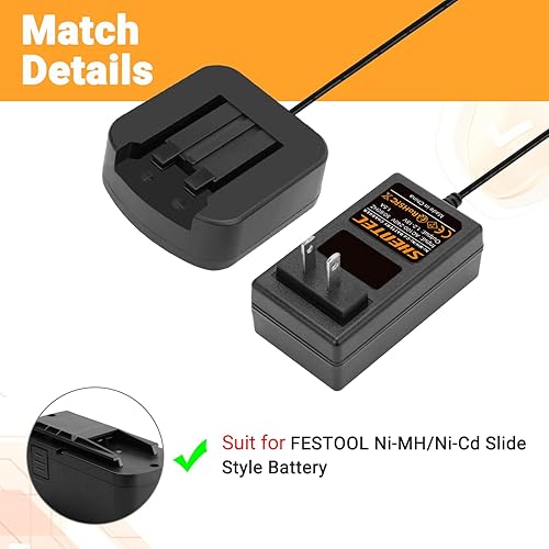 • Compatible with: FESTOOL 12V, 15.6V Ni-MH/Ni-Cd slide style battery.