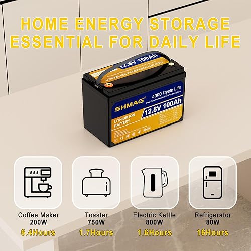 Long Lifespan and High Efficiency: SHMAG 12.8V 100Ah LiFePO4 Battery Provides 4000~15000 Depp Cycles, 4000 Times Cycles at 100% DOD, 6000 Times Cycles at 80% DOD, 15000 Times Cycles at 60% DOD, the Discharge Efficiency of the Battery is as High as 90%-100%, Compared with the 50% Discharge of Traditional Lead-Acid Batteries.