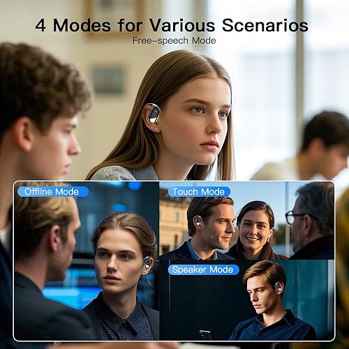 3-in-1 Functionality and HD Audio Quality:Combining translation, music playback, and calls, these earbuds are perfect for work and leisure. The earbuds features a 14.2mm diaphragm speaker and 4 high-precision microphones for excellent sound quality, delivering clear music and calls in any situation.