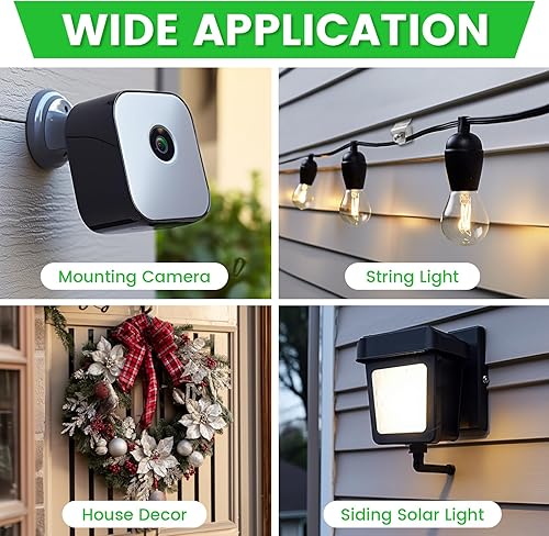 【VERSATILE OUTDOOR USE】versatile enough for all outdoor needs! Use these siding hooks for hanging security cameras, string lights, wreaths, house numbers, and address plaques. Compatible with aluminum, and fiber cement siding.