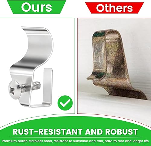 【STURDY STAINLESS STEEL CONSTRUCTION】 Built to withstand harsh weather, these rust-proof siding hooks are crafted from polished stainless steel. They won’t bend, stain, or corrode, ensuring year-round durability for outdoor cameras, lights, and heavy address signs.