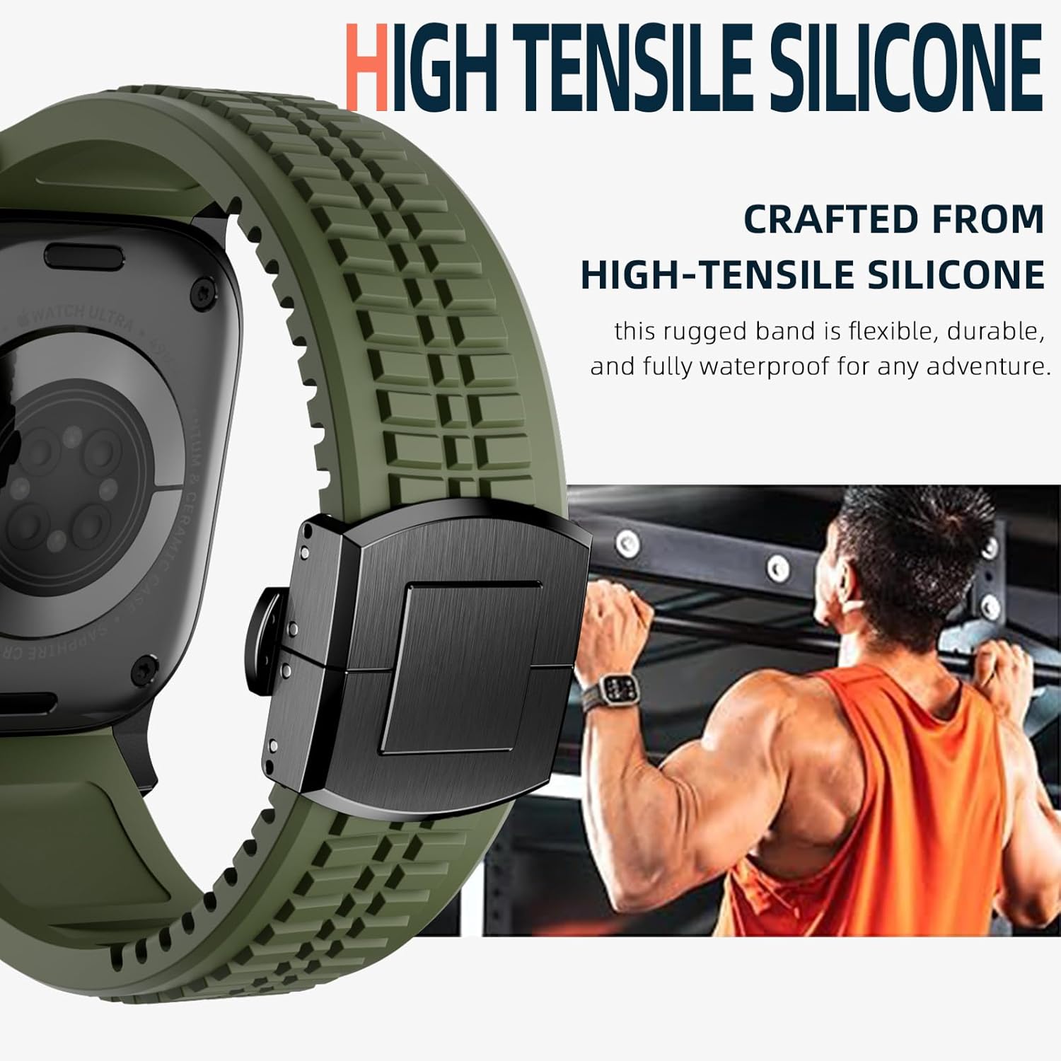 Durable Silicone Construction: Crafted from high-tensile silicone, this rugged apple watch band for men offers exceptional durability and flexibility. Its heavy-duty design ensures lasting comfort and reliable support during workouts, daily wear, or outdoor adventures