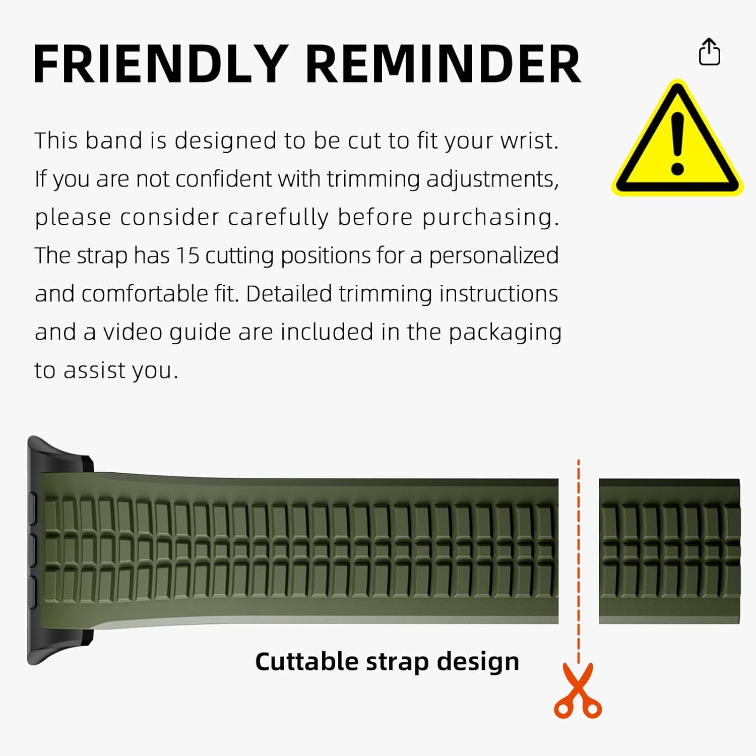 Comment on "Silicone Band Compatible with Apple Watch Ultra 3/2/1 Band 49mm for Men, Rugged Heavy Duty Sport Band with Folding Buckle for iWatch Series 11/10 46mm, 9/8/7 45mm, 6/5/4 44mm, 3/2/1 42mm(Green-Black Buckle,44/45/46/49mm)"