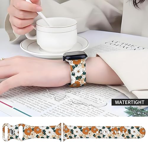 Silicone Watch Band Compatible with Apple Watch 38mm 40mm 41mm 42mm, for Series Ultra 2/1 SE 10 9 8 7 6 5 4, Soft Adjustable Replacement Strap(retro Floral,38/40/41/42mm(Series 10))