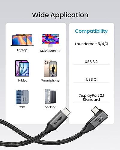 Silkland 80Gbps Right Angle USB 4 Cable for Thunderbolt 5 Cable 6.6FT, 120Gbps Bandwidth for 16K/Dual 8K, 240W, 90 Degree Braided USB C Video Cable Compatible Thunderbolt 4/5, MacBook M4 Pro,Dock,eGPU(1.6FT,1)