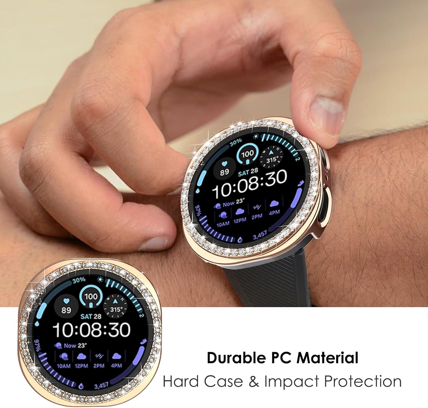Shinny Crystal Case --- Hard slim case keeps your watch lightweight and easy to install. The jewelry bling rhinestone adding a brilliant array of sparkles. (❌No Glass Screen)